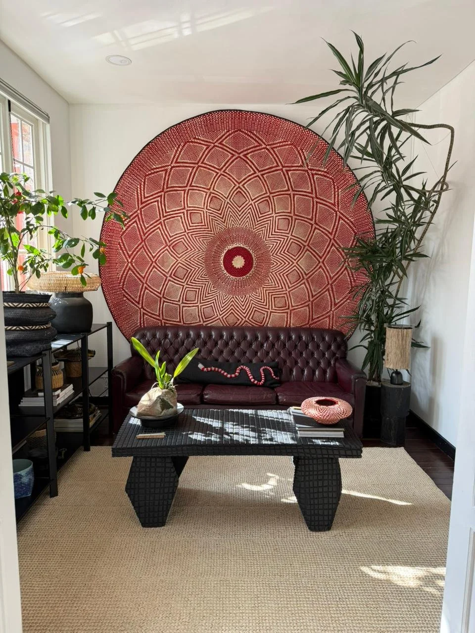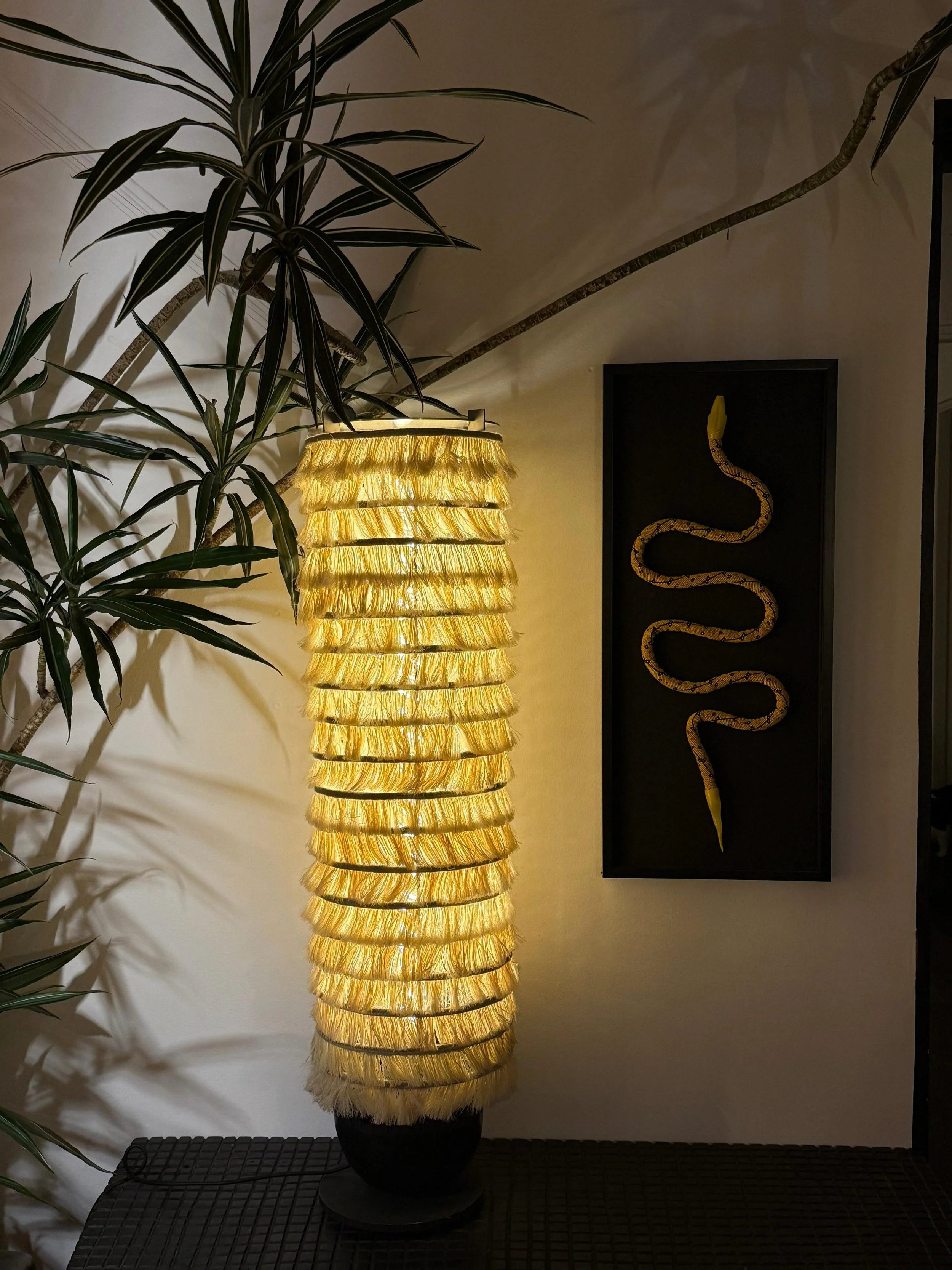 I’m currently exploring a technique called Tamo, a type of marquetry from Pasto, in the south of the country, in Nariño, made using wheat stalks. I’m experimenting with how it behaves on surfaces like glass and wood, and how it interacts with light. I’m a big fan of the decorative arts, and the fact that these patterns are created strand by strand from wheat stalks completely amazes me.